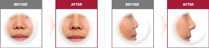 向两侧扩散的鼻头通过手术向中间集中,塑造精巧的鼻型