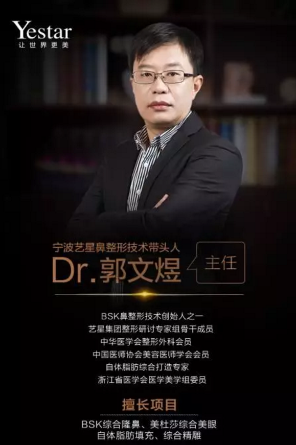 郭文煜主任从事整容美容工作三十多年,多次参加性整容美容学术交流会,对整容美容行业科研,技术与发展趋势 有独到的见解。在BSK综合隆鼻方面有丰富的临床经验。