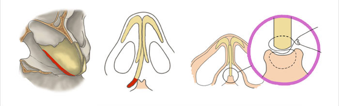 这时,如果不把鼻中隔重塑只改造鼻子的表面就会反复。所以,歪鼻一定要对弯曲的方向和范围有正确的判断,而且功能上的异常一定要在术前掌握好。特别要正确判断起支撑作用的鼻中隔软骨的状态,并进行矫正术。