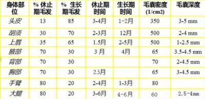 3、基于不同部位的毛发有不同的生长周期,每次治疗间隔也有差异。如头部毛发有相对较短的休止期,故间隔时间可短至1个月;躯干和四肢毛发静止期相对较长,因此治疗间隔以2个月左右为宜;