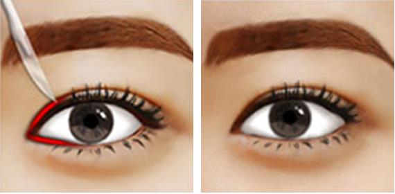 内切技术:内切技术可以调整双眼的大小,两只内眼角在48°左右。