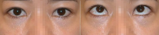 左图:在其他院所做过开放式眼袋摘除术后,残存眼袋 右图:本院进行经由结膜摘除残存眼袋手术后比较
