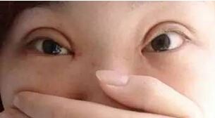 7、双眼一单一双,单睑侧可以手术或两眼皱襞宽窄不一,睑裂大小不一;