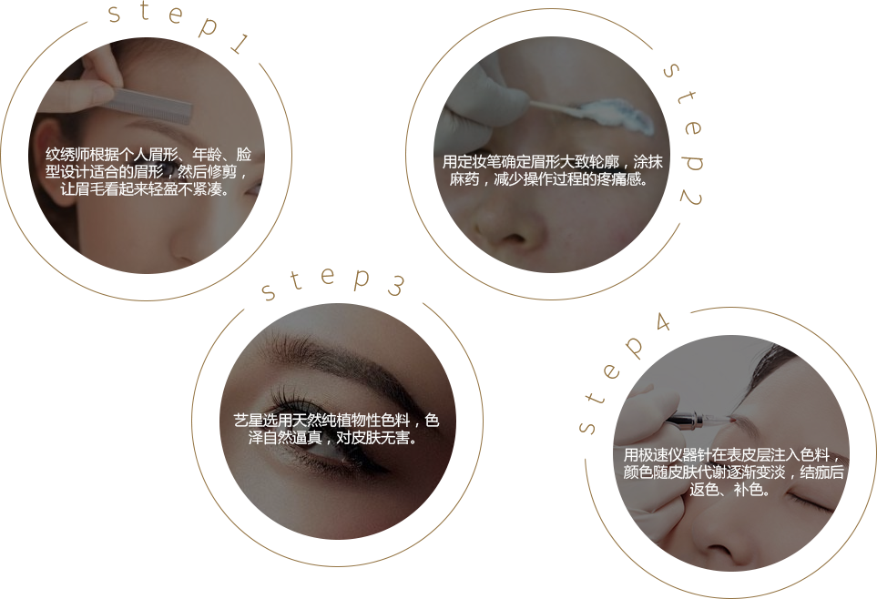 从上色到返色三个阶段,正常时间是28天左右,皮肤深层的颜色逐渐显现出来,如果线条颜色不明显或颜色太浅,这时补色微调就可以了。