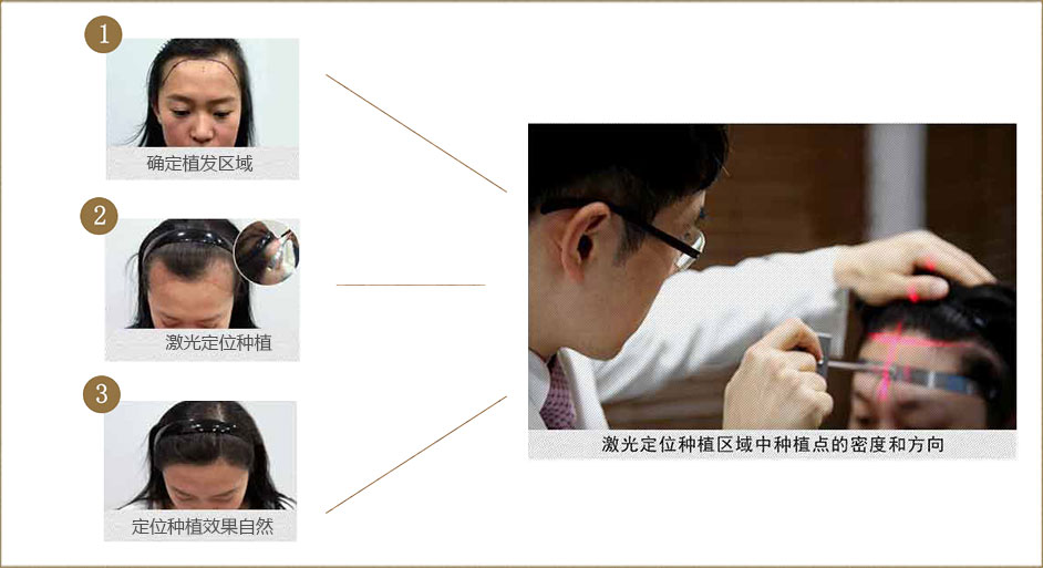 将分离好的毛囊采用激光定位后,采用YNP种植针按照设计好的直径、每平方米的密度、生长方向种植到脱发区域。