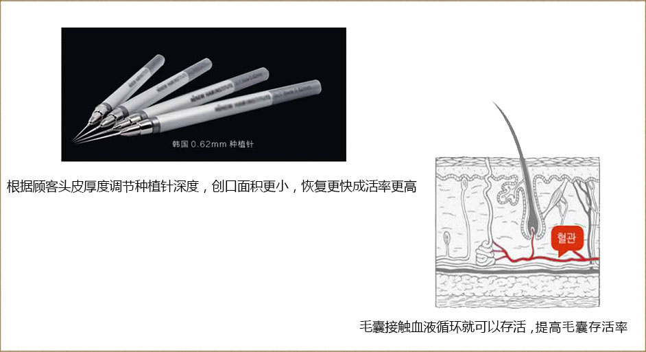 采用ATE精密提取器,从顾客的颞部和后枕部提取健康毛囊,使得术中提取损失率降低到1%以下。