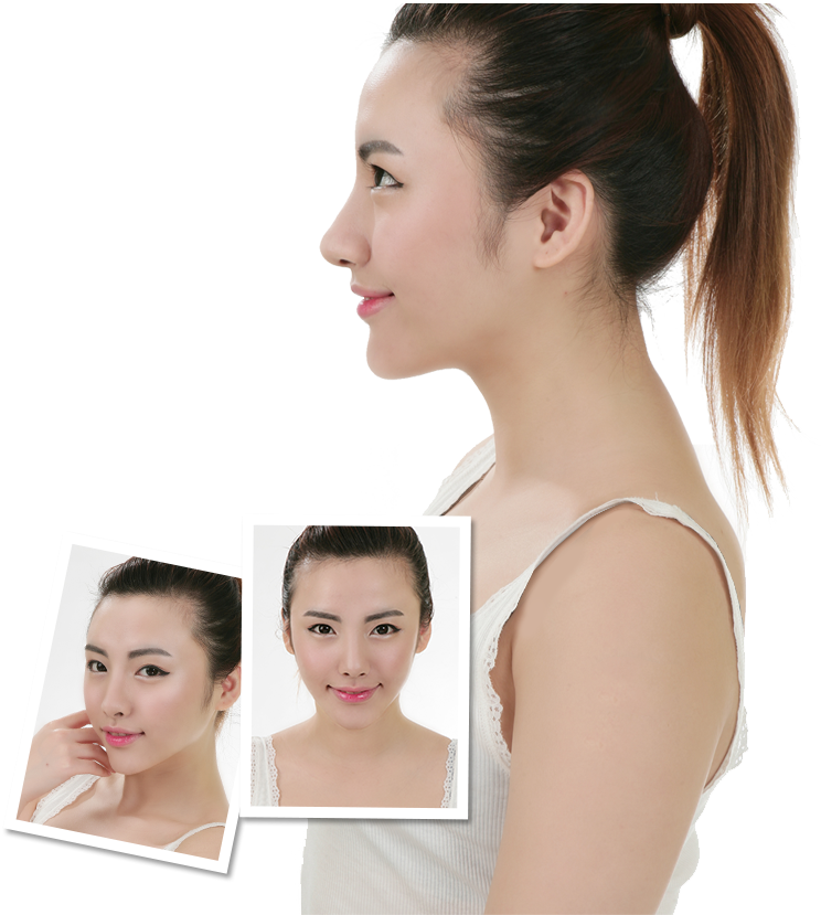 以前,鼻根处一点高度都没有,两眼间距特别宽,整个面部也没有立体感。但现在你看,不论是正面、侧面,立体感非常明显,鼻子的形状也做的非常有气质。